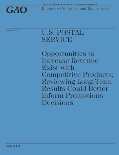 Do you have something that you like such as book? The reserve lovers usually prefer to decide on book like comic, short story and the biggest one is novel. Now, why not trying U.S. Postal Service: Opportunities to Increase Revenue Exist with Competitive Products: Reviewing Long-Term Results Could Better Inform Promotions Decisions that give your pleasure preference will be satisfied by reading this book. Reading routine all over the world can be said as the way for people to know world better then how they react towards the world. It can't be mentioned constantly that reading routine only for the geeky person but for all of you who wants to become success person. So , for all of you who want to start examining as your good habit, you are able to pick U.S. Postal Service: Opportunities to Increase Revenue Exist with Competitive Products: Reviewing Long-Term Results Could Better Inform Promotions Decisions become your own personal starter.